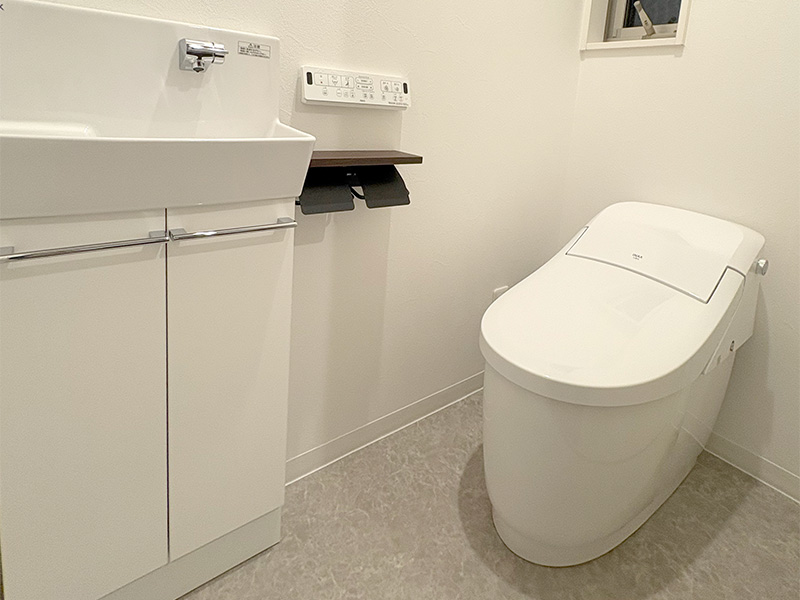 当初は、トイレ内の空間が圧迫されることを心配してコンパクトな手洗い器を検討していましたが、最終的にワイドサイズの手洗い器を設置することに。