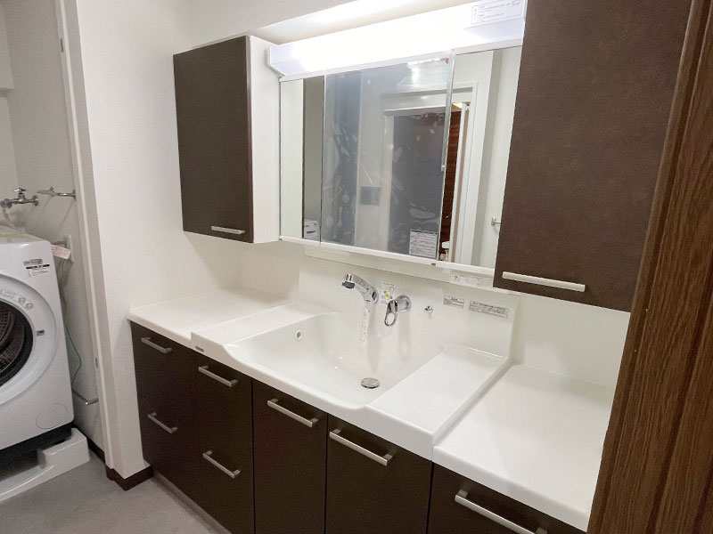 お掃除がしやすく、収納も充実した洗面化粧台